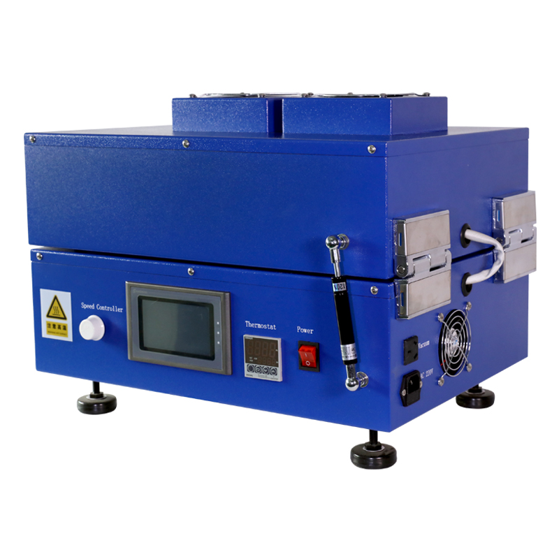 This vacuum coating machine with heating cover, it can dry films with digital temperature controller.It has a unique driving system to produce a smooth coating on all types of materials.