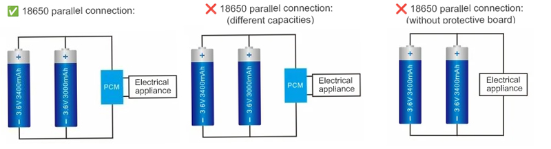 Lithium battery parallel connection: Voltage remains constant, capacity is added, internal resistance decreases, and power supply duration is extended.