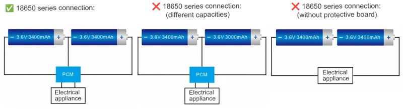 Due to the limited voltage and capacity of individual batteries, series-parallel connections are often required in practice to achieve higher voltages and capacities to meet the power requirements of the device.