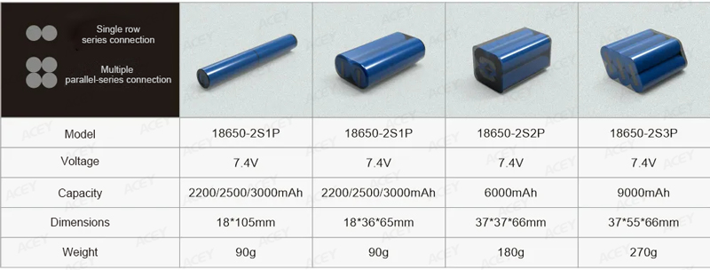 Series voltage: 3.7V individual batteries can be assembled into battery packs with a voltage of 3.7*(N)V (N: number of individual batteries) as needed.