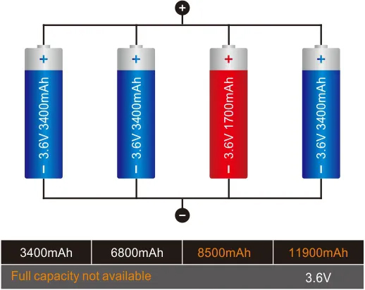 Parallel Capacity: 2000mAh cells can be assembled into battery packs with a capacity of 2*(N)Ah (N: number of cells) as needed.