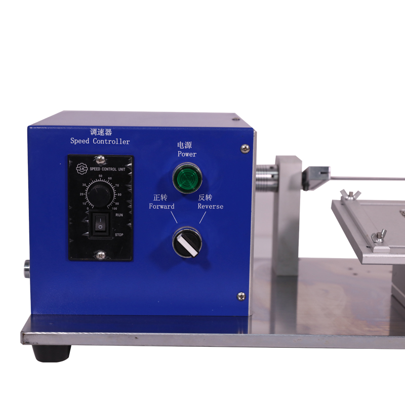 First, adjust the width of the guide plate and the pole piece, put the pole piece into the guide groove, put the pole piece winding head part into the winding needle, advance the right needle, and clamp the pole piece with the left pin. Then press the foot valve motor to rotate and wind, and then push the right needle away to take out the battery core.