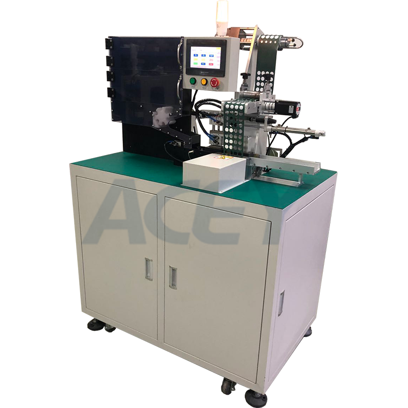 We have independent automatic sticking machine for cylindrical cell. One device focused on putting insulating paper on one type of battery, so ACEY has 18650 automatic sticker machine, 21700 sticker machine, 32650 sticker machine.